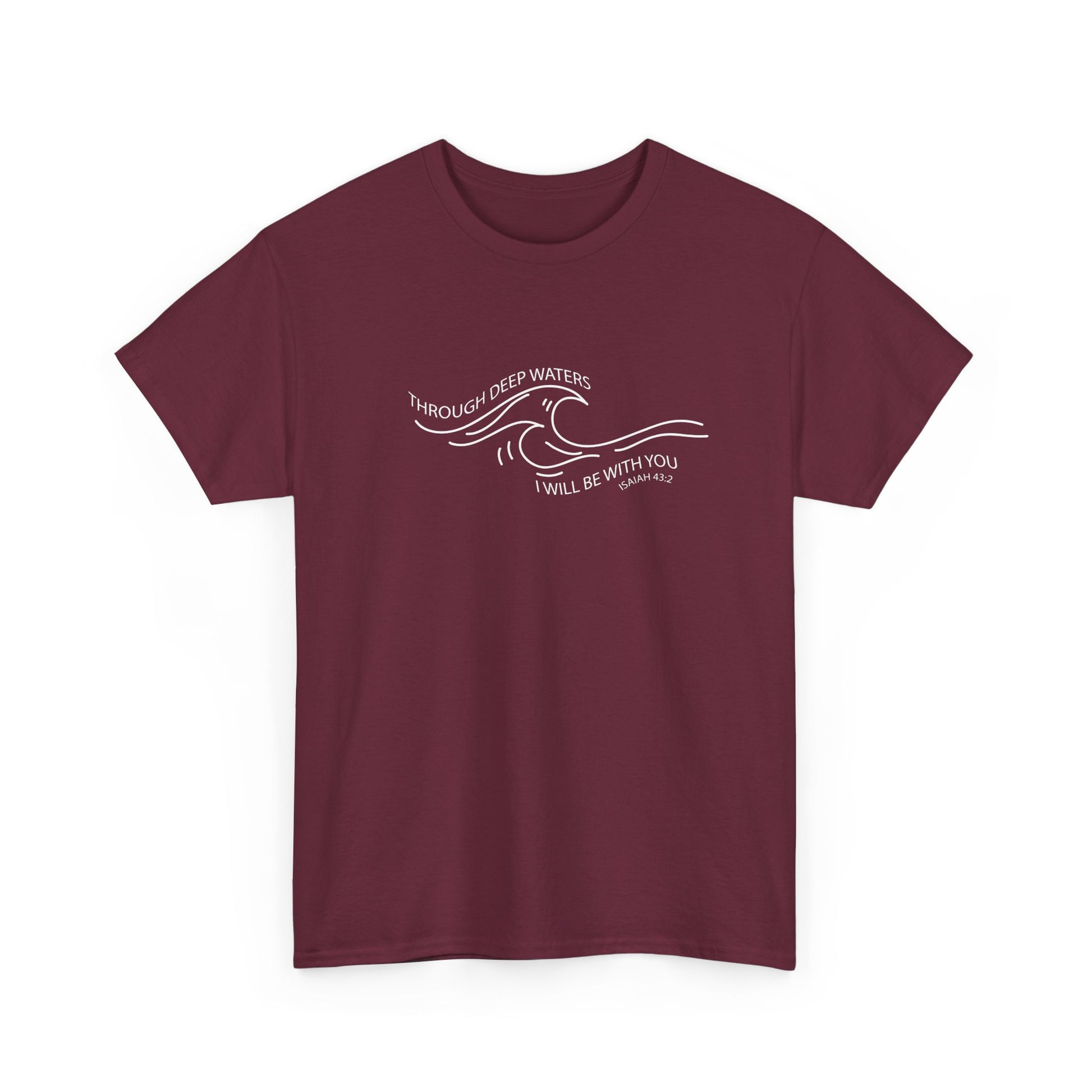 Rooted in strength and calm, our Deep Waters Tee features a minimalist wave design paired with the powerful promise of Isaiah 43:2: